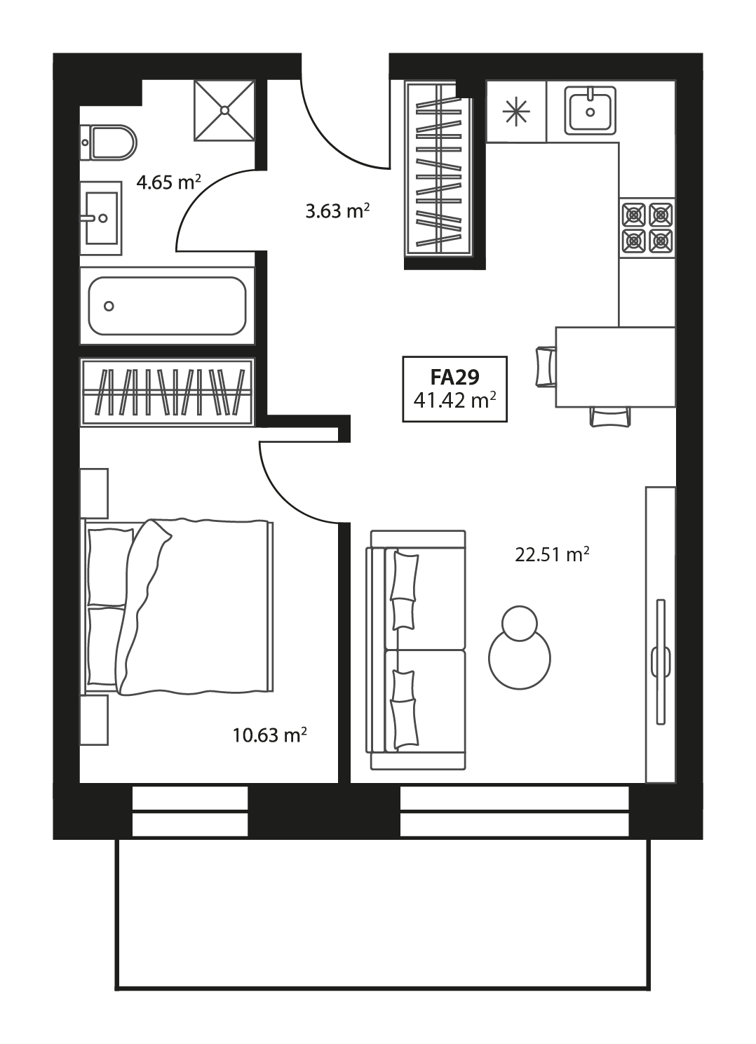 | FA29 | 2 kambariai | Plotas: 41.42 m2 | Aukštas: 2 | Kryptis: Rytai | Apdaila: Dalinė | Rezervuotas | Peržiūrėti |