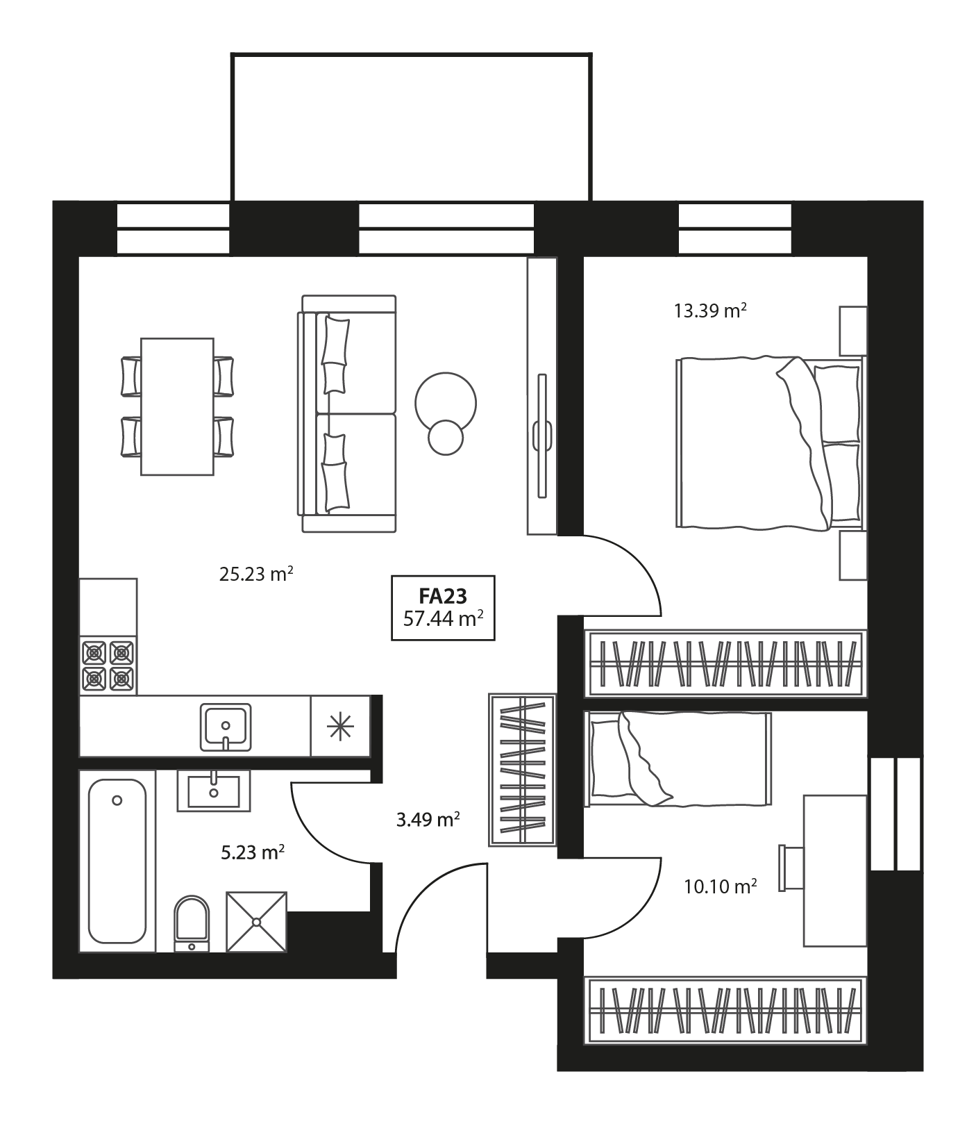 FA24 3 kambariai Plotas: 57.4 m2 Aukštas: 2 Kryptis: Rytai Apdaila: Dalinė Laisvas