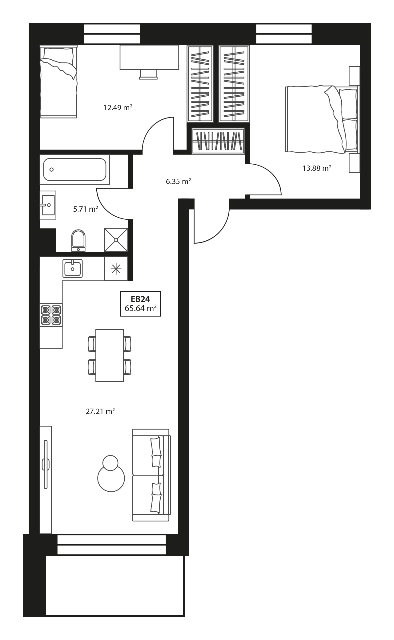 | EB13 | 1 kambarys | Plotas: 29.47 m2 | Aukštas: 1 | Kryptis: Pietūs, rytai | Apdaila: Dalinė | Laisvas | Peržiūrėti |