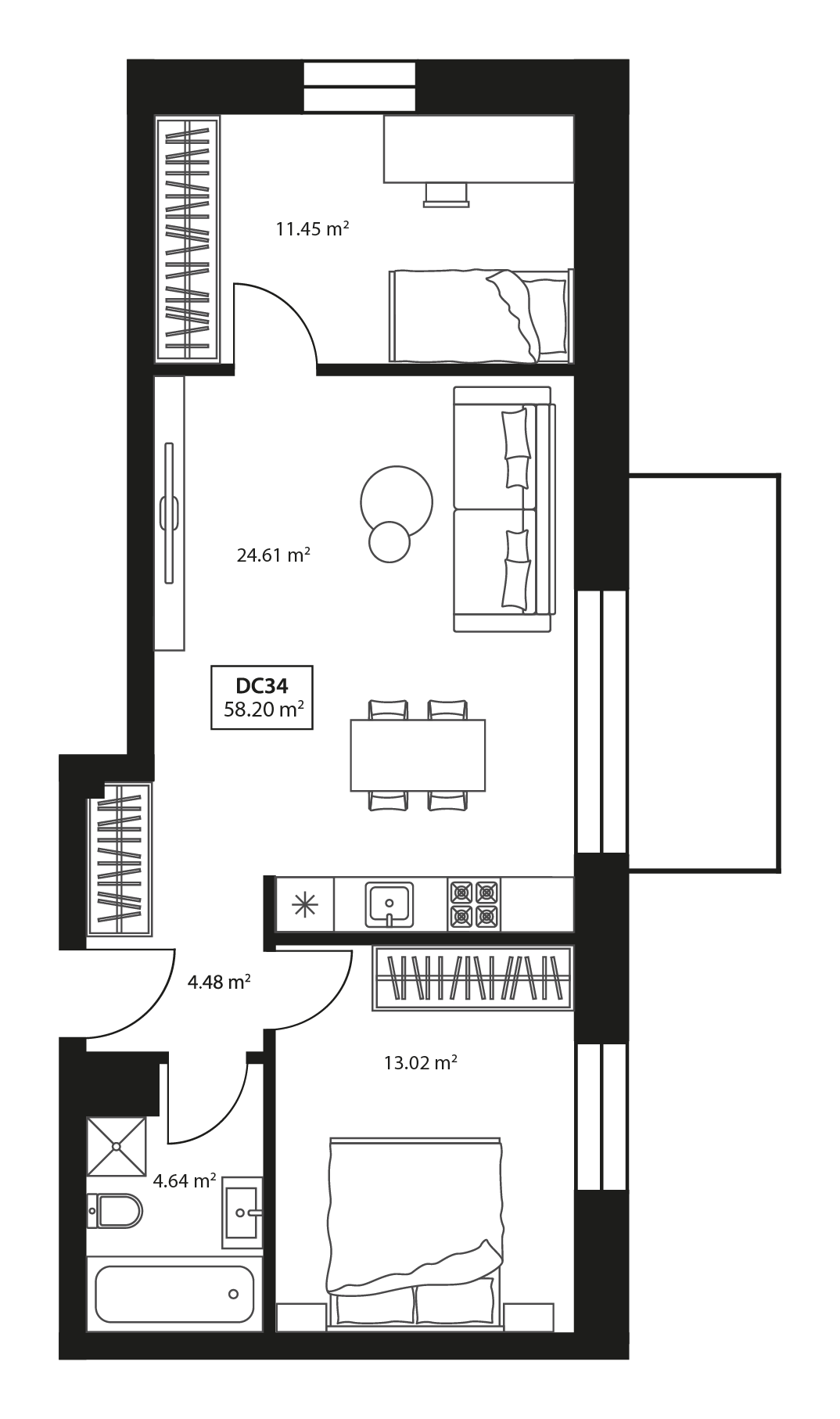 | DC34 | 3 kambariai | Plotas: 58.2 m2 | Aukštas: 3 | Kryptis: Šiaurė, vakarai | Apdaila: Dalinė | Laisvas | Peržiūrėti |