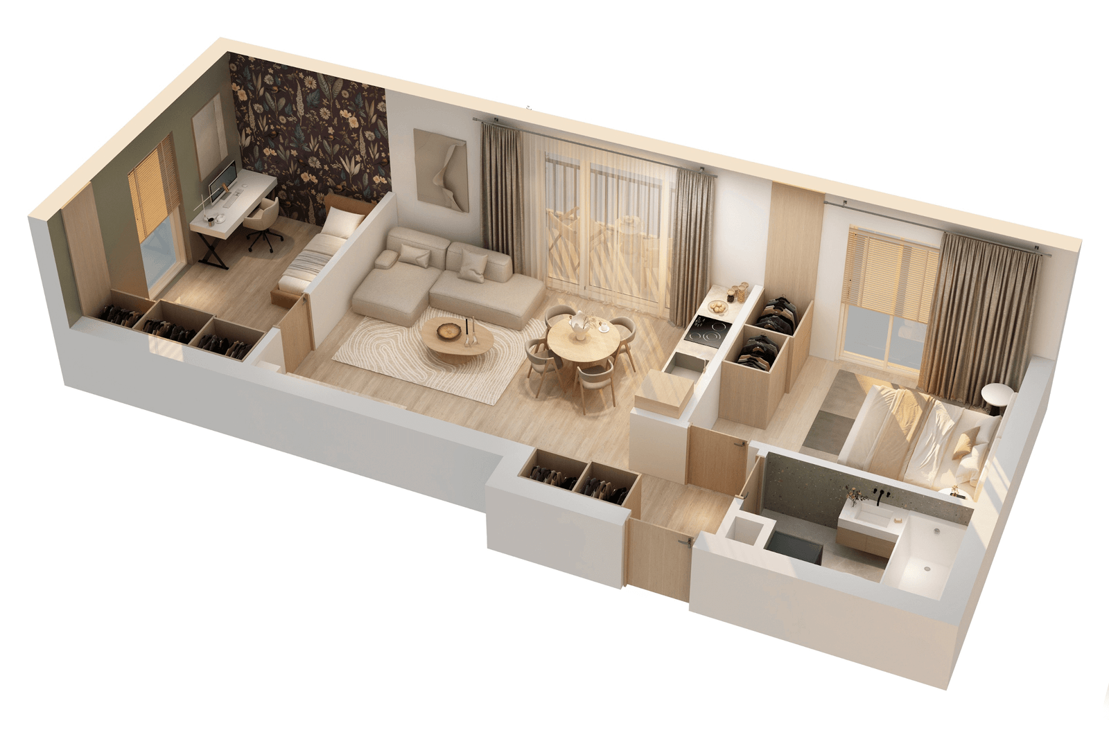 | DC24 | 3 kambariai | Plotas: 58.29 m2 | Aukštas: 2 | Kryptis: Šiaurė, vakarai | Apdaila: Dalinė | Laisvas | Peržiūrėti |